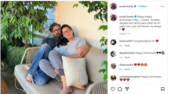 MUMBAI: Actor Suniel Shetty on Monday penned a special note for his wife Mana on their 41st wedding anniversary.
