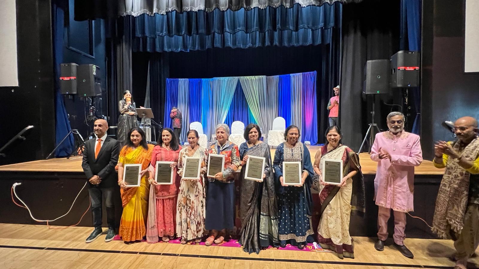 A highlight of the night was the recognition of “Eight Jewels of Los Angeles” — inspiring women behind successful men, honored with plaques and a standing ovation: Harsha Patel, Rika Shah, Pushpa Patel, Usha Wadher, Nalini Solanki, Rekha Bajaria, Dr. Daksha Jain Kapadia, and Preeti Shah.