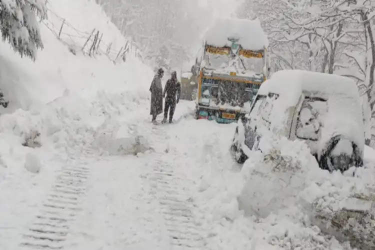 Thousands of vehicles stranded on Jammu-Srinagar highway due to snowfall